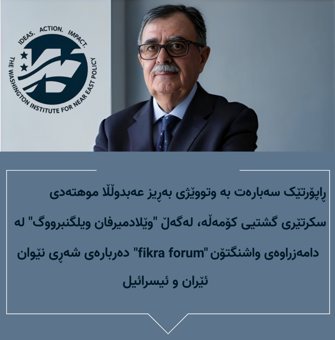 ڕاپۆرتێک سەبارەت بە وتووێژی بەڕیز عەبدوڵڵا موهتەدی، سکرتێری گشتیی کۆمەڵە، لەگەڵ “وێلادمیرفان ویلگنبرووگ” لە دامەزراوەی واشنگتۆن “fikra forum” دەربارەی شەڕی نێوان ئێران و ئیسرائیل