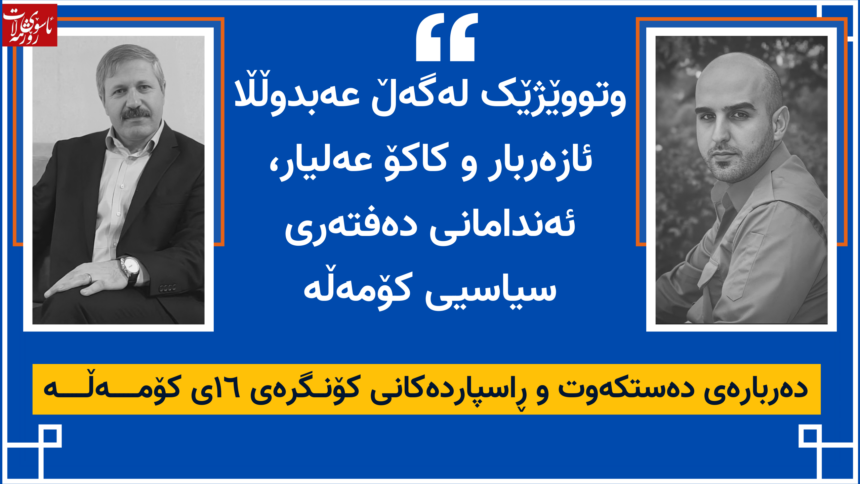 کۆمەڵەی شۆرشگێری زەحمەتکێشانی کوردستانی ئێران لە ناوەراستی مانگی رەزبەری ئەمساڵ (١٤٠٣)ی هەتاوی بەرابەر بە سەرەتاکانی مانگی نوامبری ٢٠٢٤ی زایینی و لەسەر راسپاردەی دوایین پلێنۆمی کومیتەی ناوەندیی هەڵبژێردراوی کۆنگرەی پازدەهەم(١٥) و…