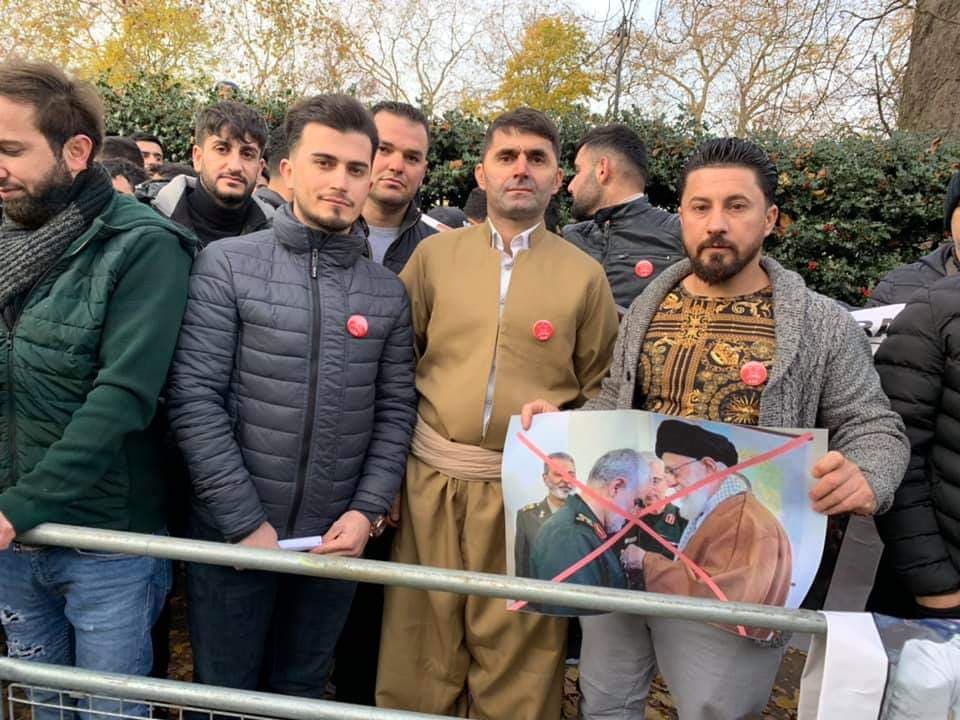 ئهندمانی و لاینگرانی حزبه كوردستانیهكان چوونه بهردهم باڵویزخانهی ئێران له لهندهن